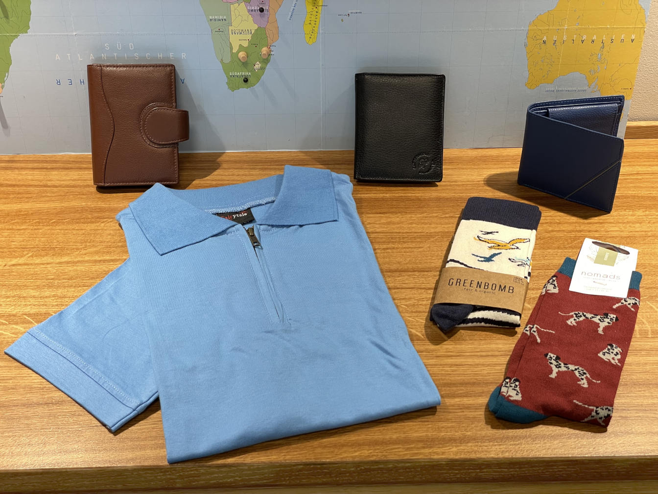 Die Weltkarte in unserem Laden könnte auch anders herum hängen, dann wiese der Süden nach Norden und das könnte vielleicht zu einer anderen Betrachtung der Welt führen… Oder es ist einfach der Genuss von fair gehandeltem Kaffee, Honig oder fruchtigen Mangospezialitäten, der einem gut tut sowie die Freude an schönen Dingen, die mit Sorgfalt und handwerklichem Können hergestellt wurden.